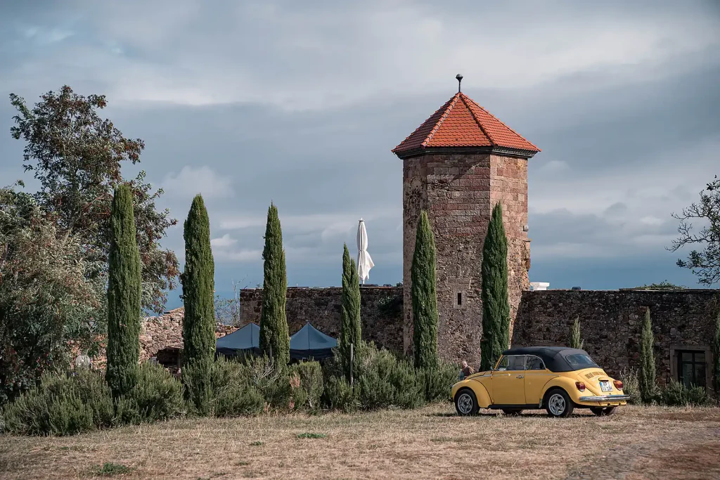 - Das Licht: Durch die exponierte Lage auf dem Bergplateau gibt es hier spektakuläre Sonnenuntergänge. Wenn die Sonne am Abend tief steht (die sogenannte „Golden Hour“), taucht sie die Burgmauern und die Weinreben in ein weiches, warmes Licht – ein Traum für romantische Paarfotos.