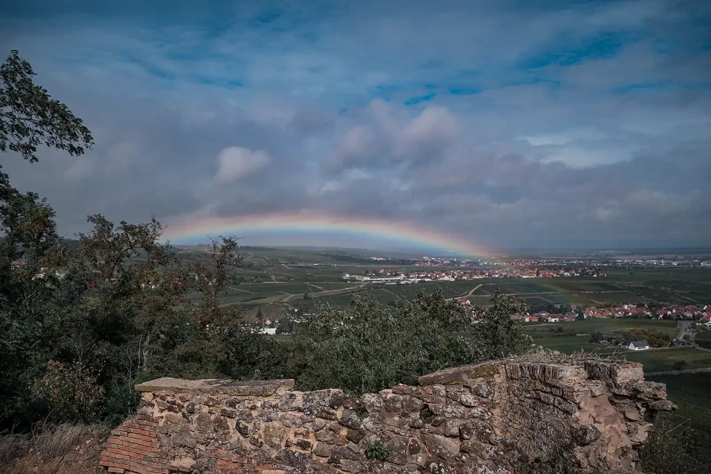 Besonders beliebt ist Battenberg für freie Trauungen. Die Zeremonie kann direkt auf der Wiese an der Burgmauer stattfinden – mit einem unverbaubaren Blick über die Rheinebene bis hin zum Odenwald. Wer es klassisch kirchlich mag: Die St. Martins Kirche liegt nur wenige Schritte entfernt. So lässt sich der feierliche Gottesdienst perfekt mit einem Fußweg zur Feierlocation verbinden, ganz ohne Autokorso.