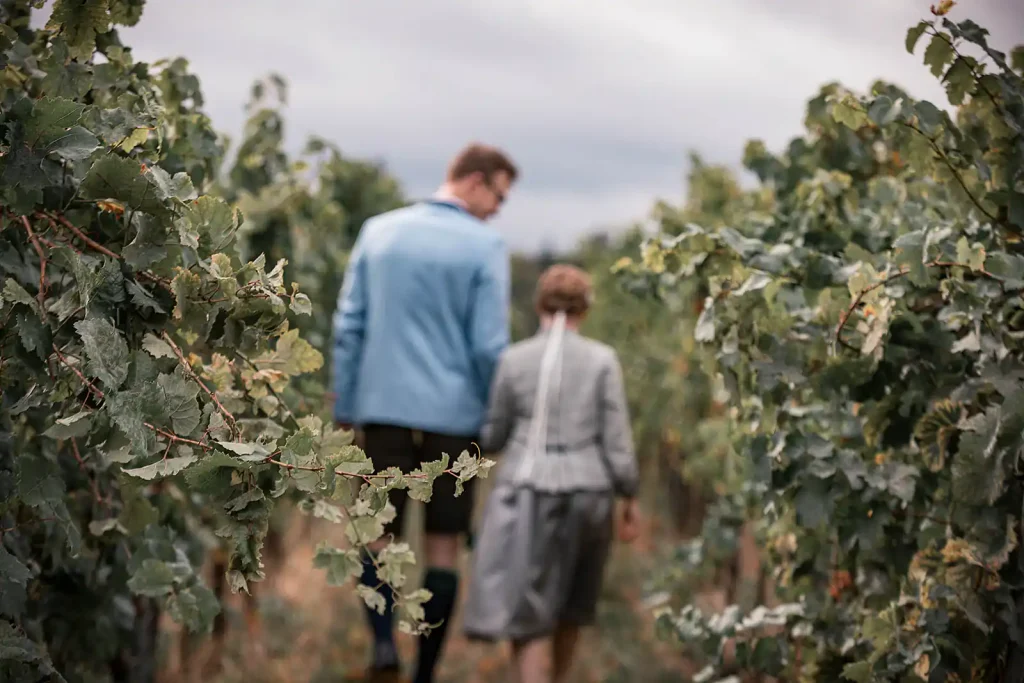 - Kontraste: Wir haben hier alles auf engstem Raum. Die rauen, historischen Mauern der Burgruine bieten einen tollen Kontrast zum feinen Brautkleid. Nur ein paar Meter weiter stehen wir mitten in den grünen Weinbergen oder haben die enorme Weite der Landschaft im Hintergrund.