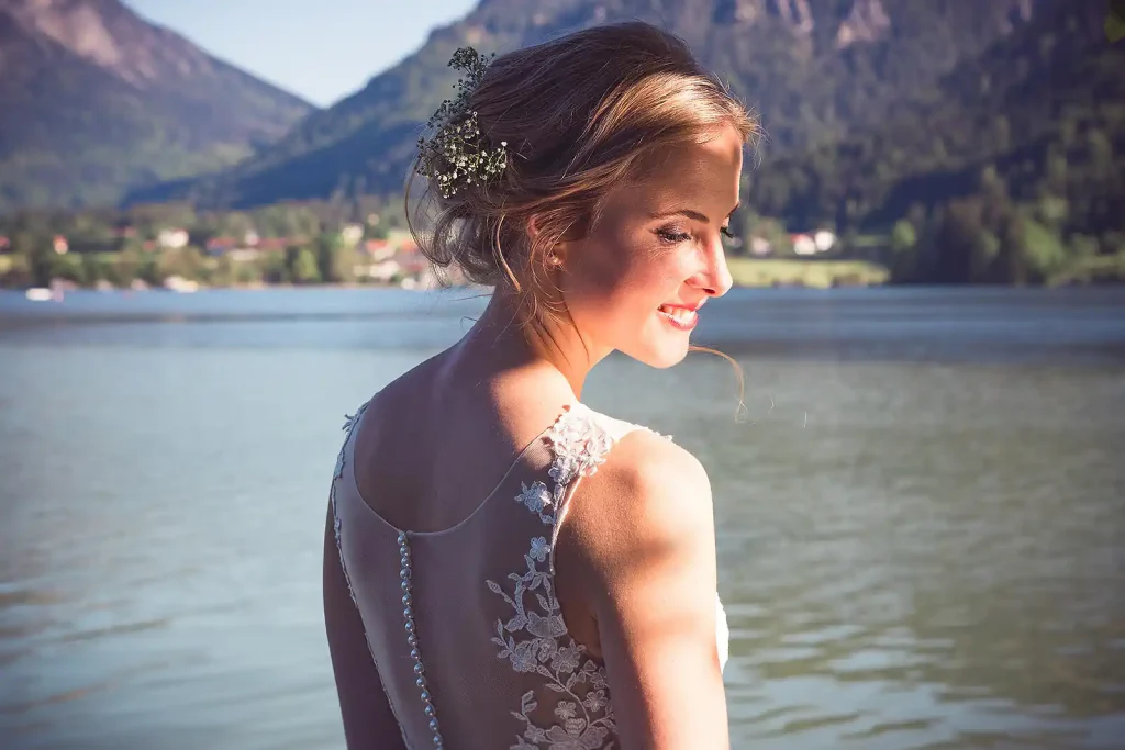 Was den Schliersee für Hochzeitsfotos so besonders macht, ist die Vielfalt auf engem Raum. Innerhalb weniger Minuten gelangt man vom Seeufer in dichte Wälder oder auf Anhöhen mit weitem Blick über das Tal. Das Zusammenspiel von tiefblauem Wasser und den Gipfeln des Mangfallgebirges sorgt für eine Bildtiefe, die zu jeder Jahreszeit beeindruckt – ob im sommerlichen Grün oder vor schneebedeckter Bergkulisse.