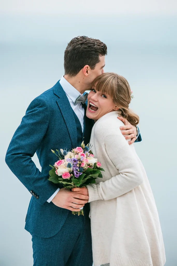 - Farbkontraste: Ein weißes Kleid oder ein dunkler Anzug heben sich vor der oft reduzierten, eher grauen oder braunen Winterlandschaft (oder gar Schnee) fantastisch ab.